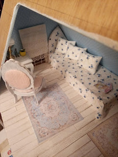 Ahogy nézegettem a neten, a Greenleaf Coventy Cottage nevű babaháza padlásszobájának berendezése mindenkit megizzaszt, mert elég fura alakja van. Szűk a hely, és nem is túl magas. Én évekig gondolkoztam rajta, de azt hiszem, végre sikerült megtalálni a lehető legjobb megoldást. Az ötletet egy nemrégiben elfogyasztott kecskesajt doboza adta, aminek történetesen fürdőkád alakja van, és még a mérete is tökéletes. :) Megszámlálhatatlan réteg gesso és fényes lakk került rá az elmúlt héten, így nagyjából a színe is megfelelő lett. Ha véletlenül találok egy pontosan ideillő kádat valahol (pl. az e-bay-en), akkor majd kicserélem, de egyelőre elfogadhatónak tűnik ez a megoldás. Annál is inkább, mert az általam eddig látott 1:12 méretarányú kádak egyike sem fér be.